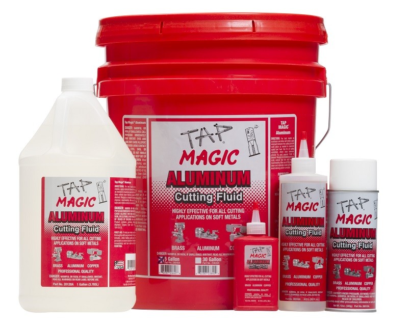 Tap Magic Aluminum is the cutting fluid of choice for any work on aluminum, brass, copper, and other soft metals. Unlike some other fluids on soft metals, it will not stain the surface of the work. Precision is always excellent and the finish is always superb.